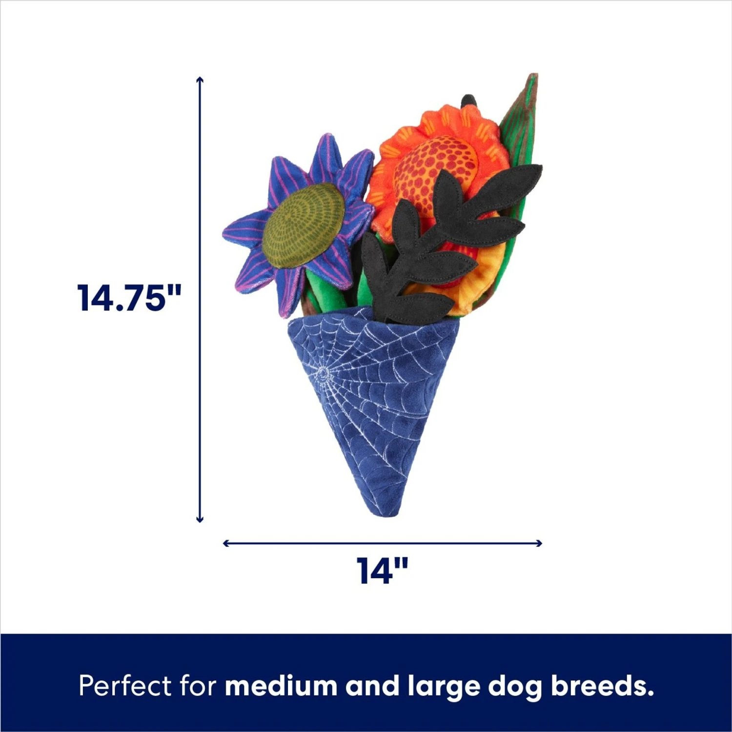 Give your furry friend a floral gift for Halloween with this squeaky plush bouquet dog toy, from Frisco by Chewy! Any time of the year works for flowers, even a spooky day like Halloween. This bouquet is great for some classic fetching, chasing, and cuddling. It lets out a cute little squeak with every boop and comes with crinkle paper for extra playtime points. As a bonus, your pooch can cuddle up with their new favorite toy when the lights go out at night.