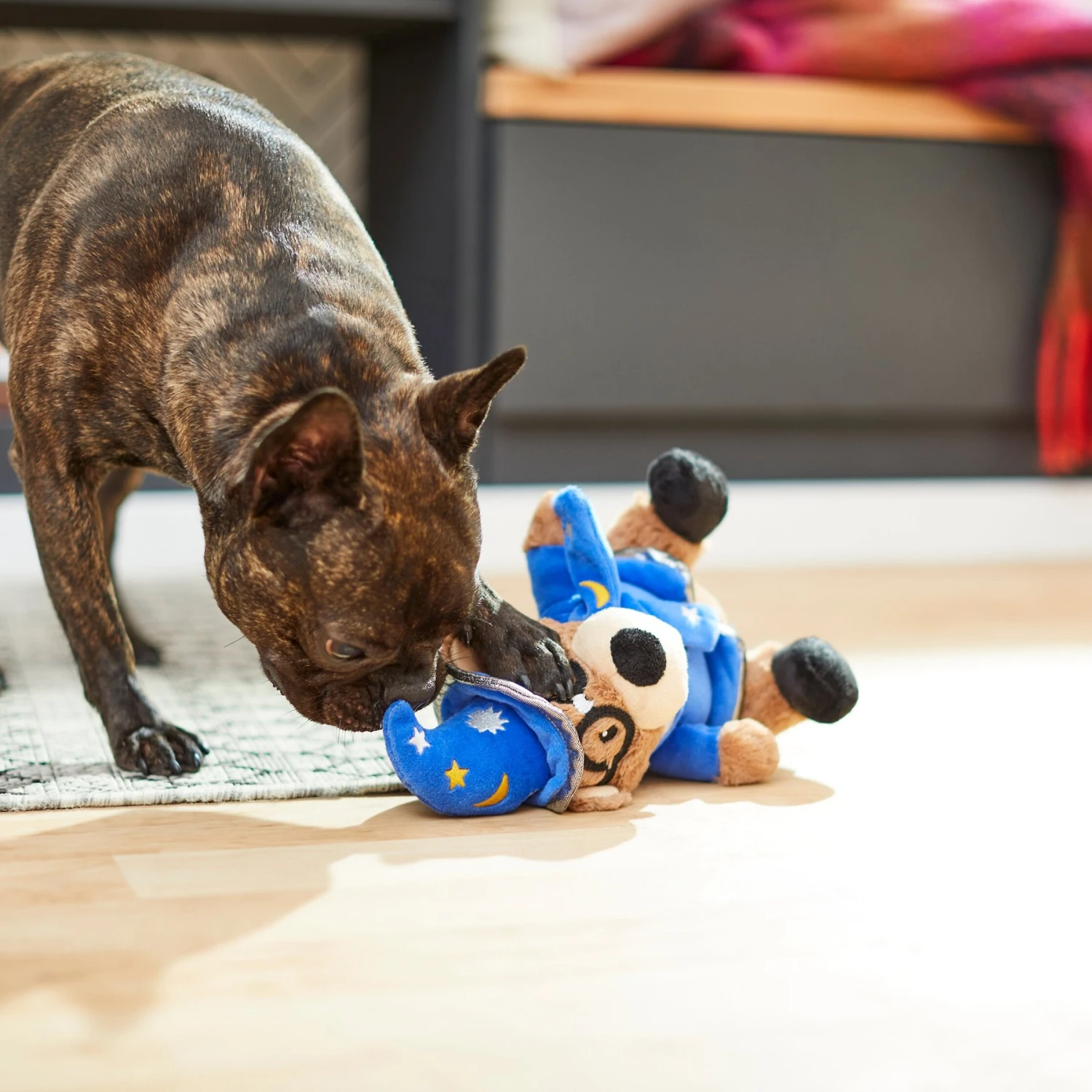 For your next magic trick, youâll make a squeaky, plushy toy appear out of thin air. Well, at least thatâs what your pup will think! Stuffed with squeakers and crinkle paper, this collectible wizardly bear is ready to bring on the playtime magic for all your pupâs favorite games, from fetch to the disappearing act, aka hide-and-seek. And when itâs nap time, itâs ready for some cuddles, too. Donât let the enchantment vanishâcollect all the magic-themed toys from Frisco, only at Chewy.